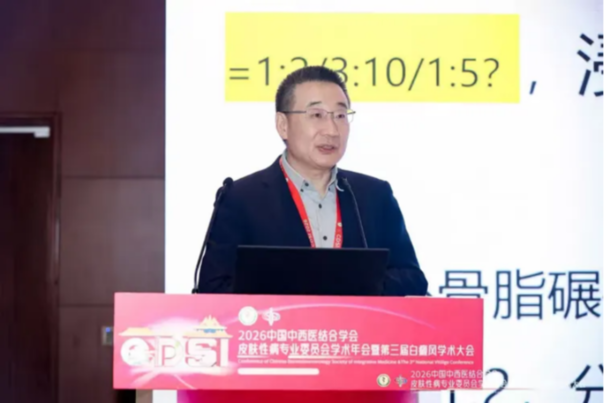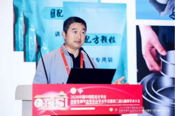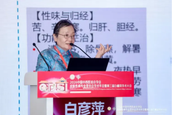 接下来,白彦萍教授以《香药在皮肤科的应用》为题带来专题分享。她系统梳理了香疗疗法的起源与发展,深入阐述了芳香类药物通过皮肤黏膜吸收、调畅气血、安神解郁等中医核心原理,以及在皮肤科多种常见病症中的应用机制。同时,结合团队近年来的临床研究数据,从常用药物的药理作用、配伍规律、剂型改良及临床疗效评价等方面进行了详细汇报,全面展示了香疗疗法的现代科学研究脉络。演讲不仅厘清了芳香药物外用的基础,也为中医皮肤病的治疗拓宽了思路。